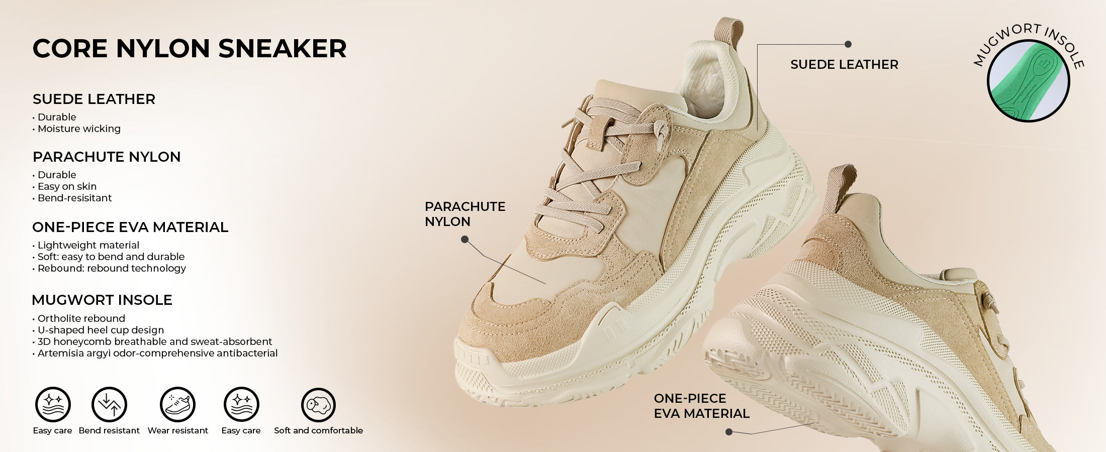 ☁️ EVA Rubber Blend Sole: Lightweight, shock-absorbing, and stable — delivers comfort, height, and balance with every step.
