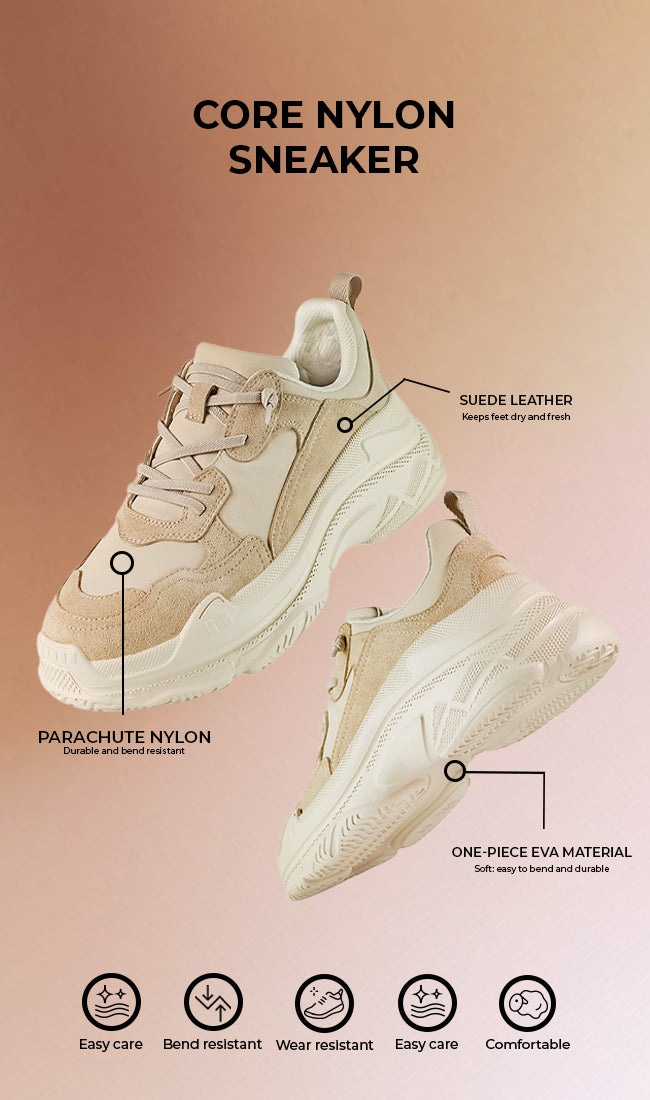 The SI Core Nylon Sneaker is where modern design meets everyday comfort. Its breathable parachute nylon upper and soft suede accents create a perfect balance of flexibility and support, while the cushioned EVA sole provides lightweight height and shock absorption. Whether you’re on the move or just keeping it casual, this sneaker keeps you feeling confident, stable, and effortlessly stylish all day long. Perfect for those who love a clean, sporty look with a premium touch.