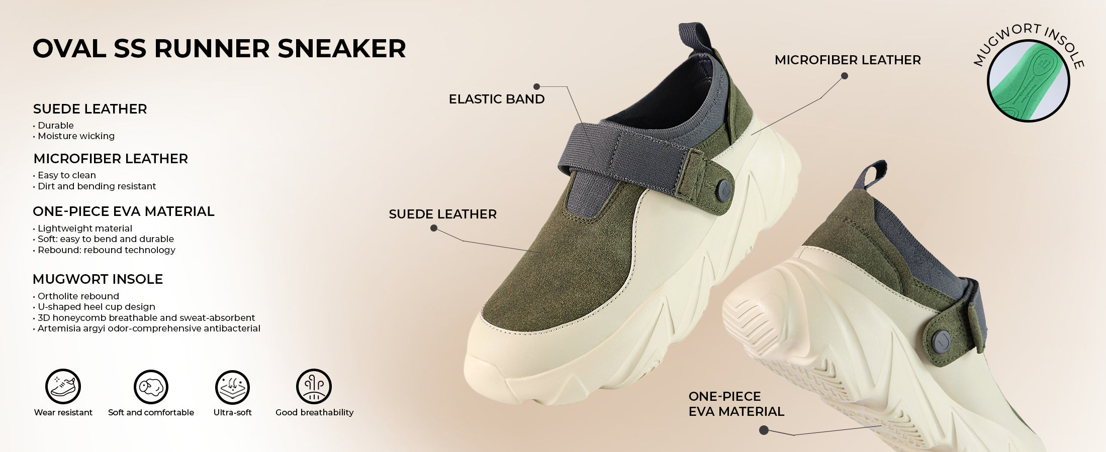 Breeze Oval SS Runner Sneaker - Olive Cream